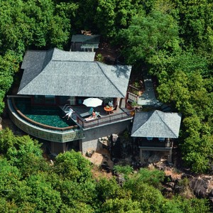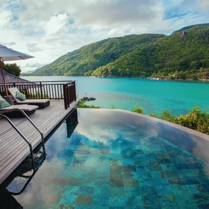 Overlooking the Port Launay Marine Park, the hillside villas (either one or two bedrooms) feature their own private pool and have been constructed and adapted to the granitic rocks on the site creating a unique accommodation concept.