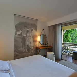 The sea-facing rooms with wide spaces and discreet decor are conducive to long midday naps. From the balcony or terrace catch a glimpse of the blue expanse of the sea.